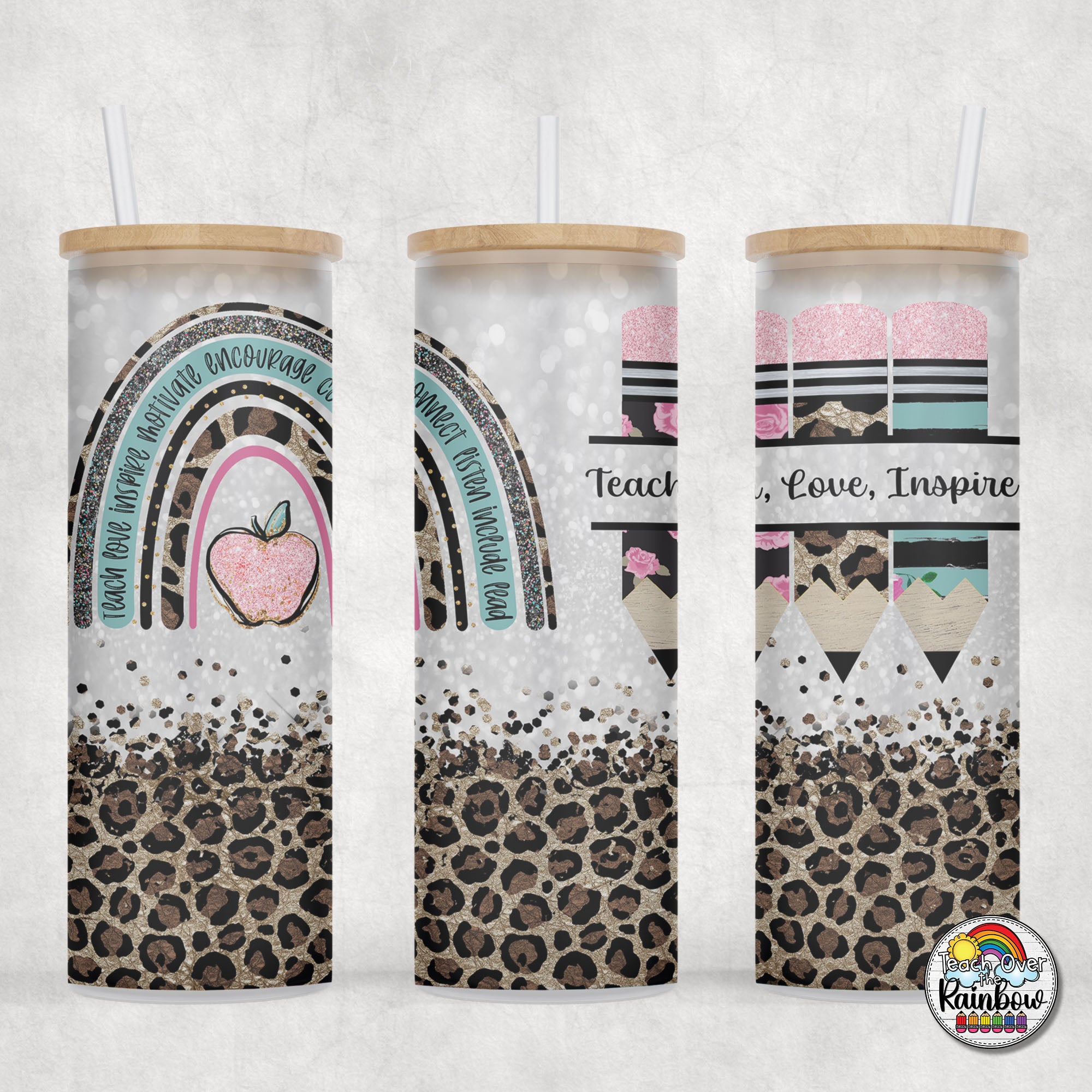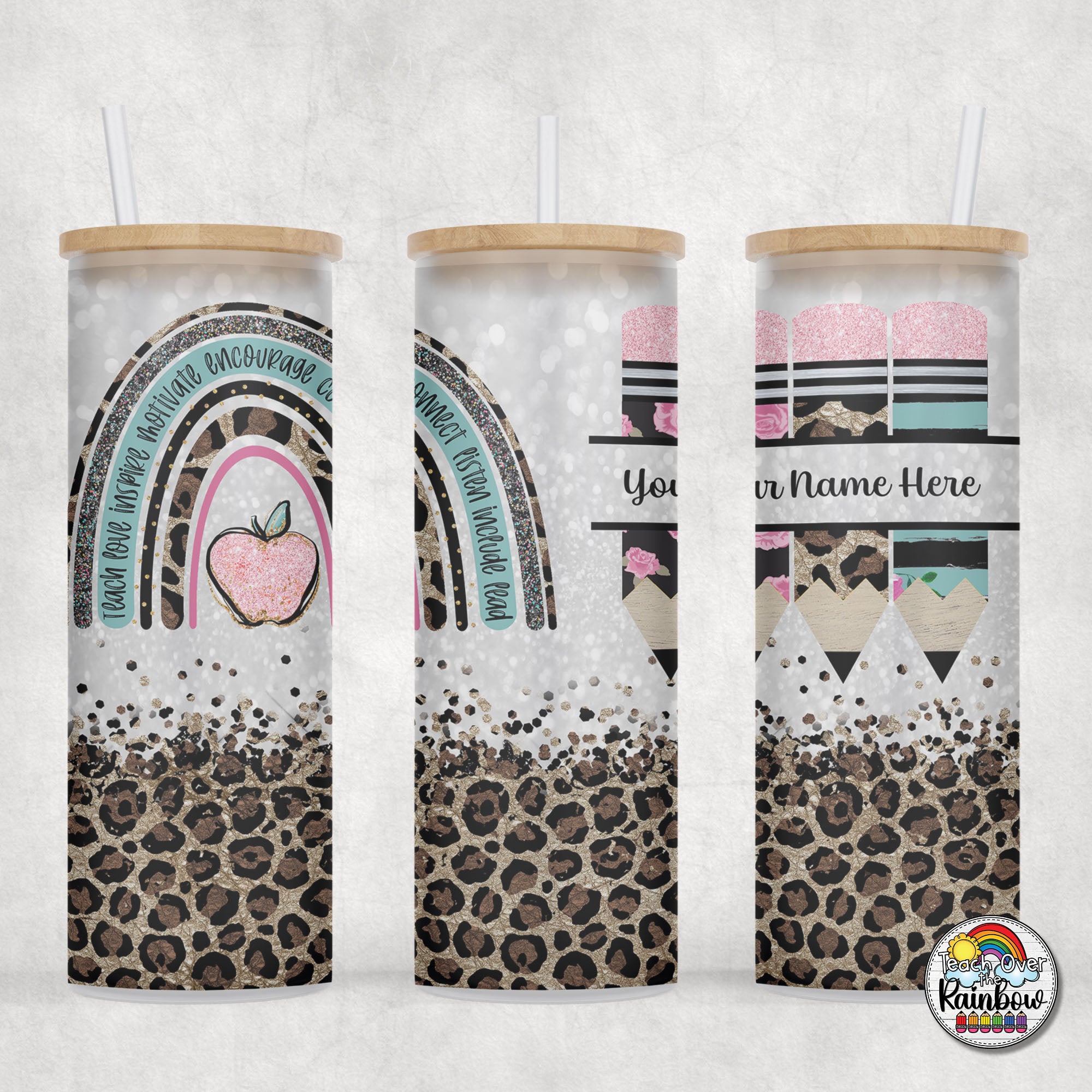 Boho Teal Leopard Glass Can
