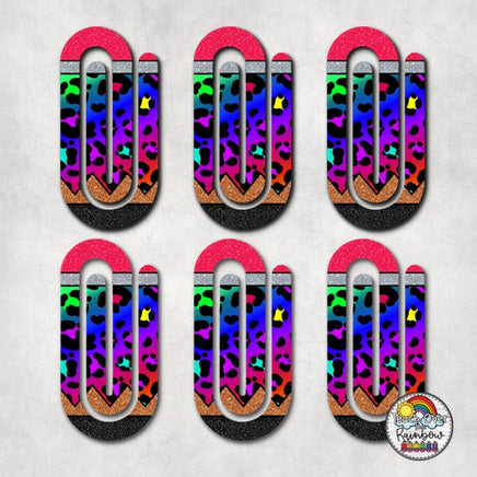 Neon Leopard Pencil Acrylic Paperclips