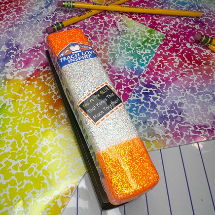 NOTE! The new Glue staplers will NO LONGER say Elmer's Glue they will say "Teach Love Inspire" with no bull and teacher items instead.